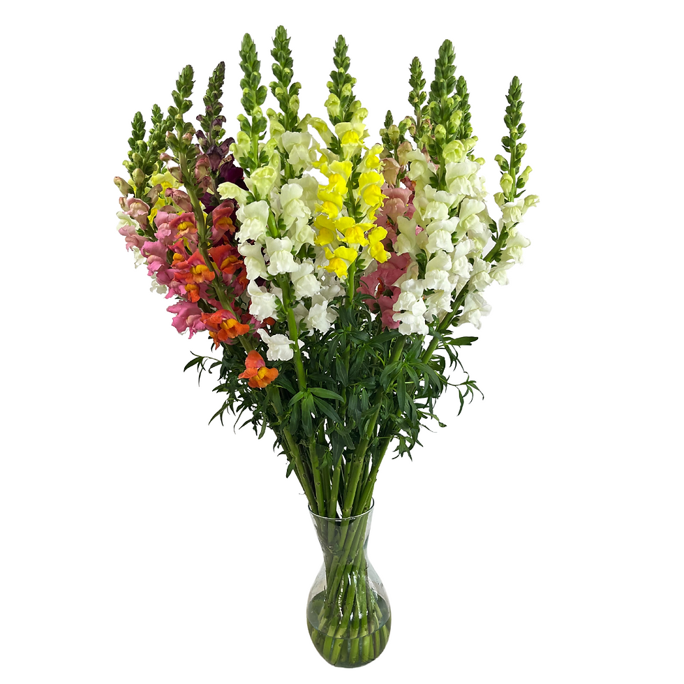 El snapdragon, conocido por sus elegantes y coloridas espigas florales, es una opción espectacular de ramo de exportación. Cultivado en los fértiles campos de Colombia, esta vibrante y delicada flor aporta altura, textura y un toque de sofisticación a cualquier arreglo. Con su variedad de tonos suaves, el snapdragon es perfecto para realzar la belleza natural de nuestras flores y convertir cualquier espacio en una obra de arte floral. Descubre la magia del snapdragon en nuestra tienda en línea.